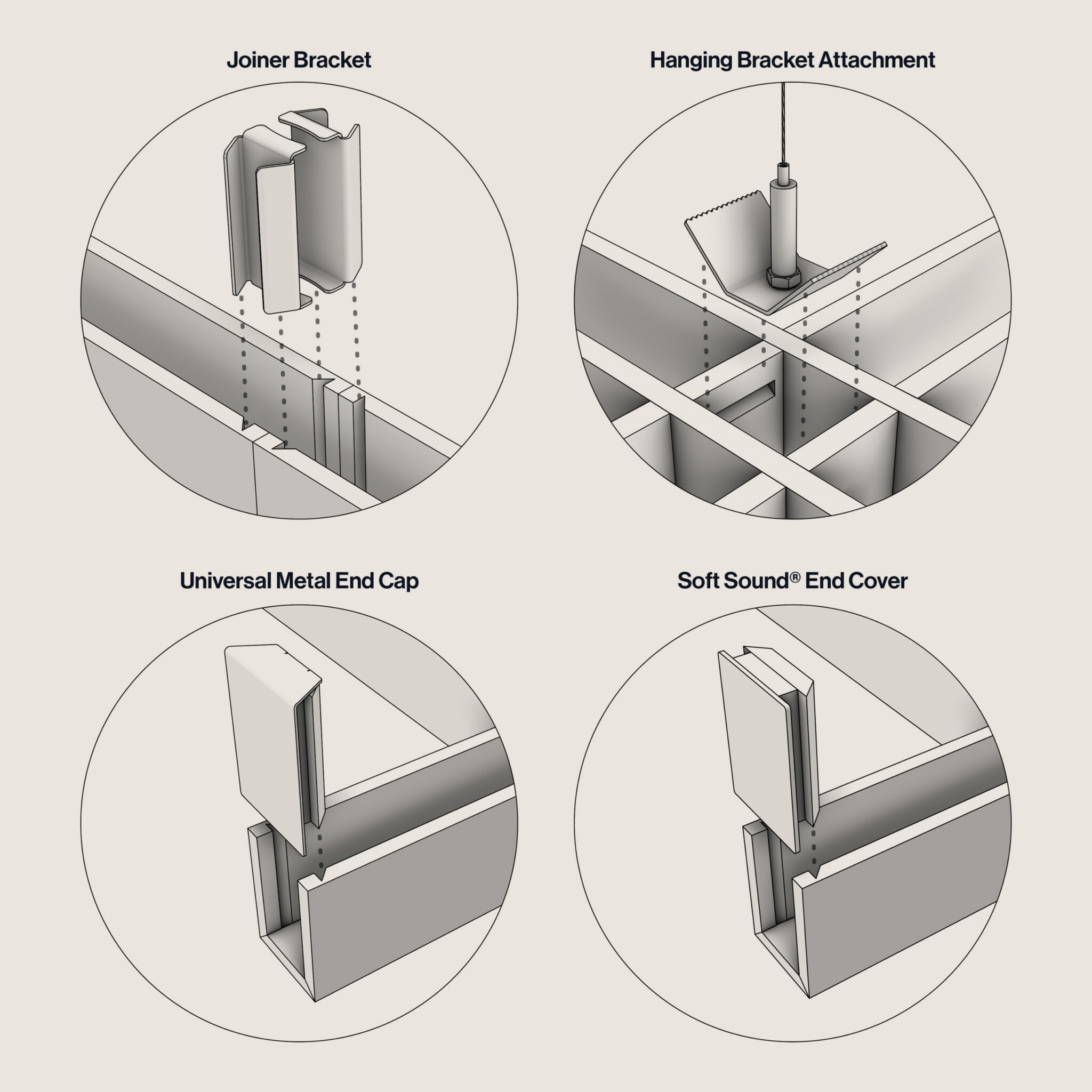 Ayrıca, Asoft™ kofer panellerini ekleyerek daha kapalı bir görünüm elde edebilir ve mekanın akustiğini daha da geliştirebilirsiniz. SoftSpan® 24, SoundBar® akustik baffle ve aydınlatma sistemi ile tam uyumluluğu sayesinde, modern ve işlevsel bir tasarım arayanlar için mükemmel bir seçim sunar.