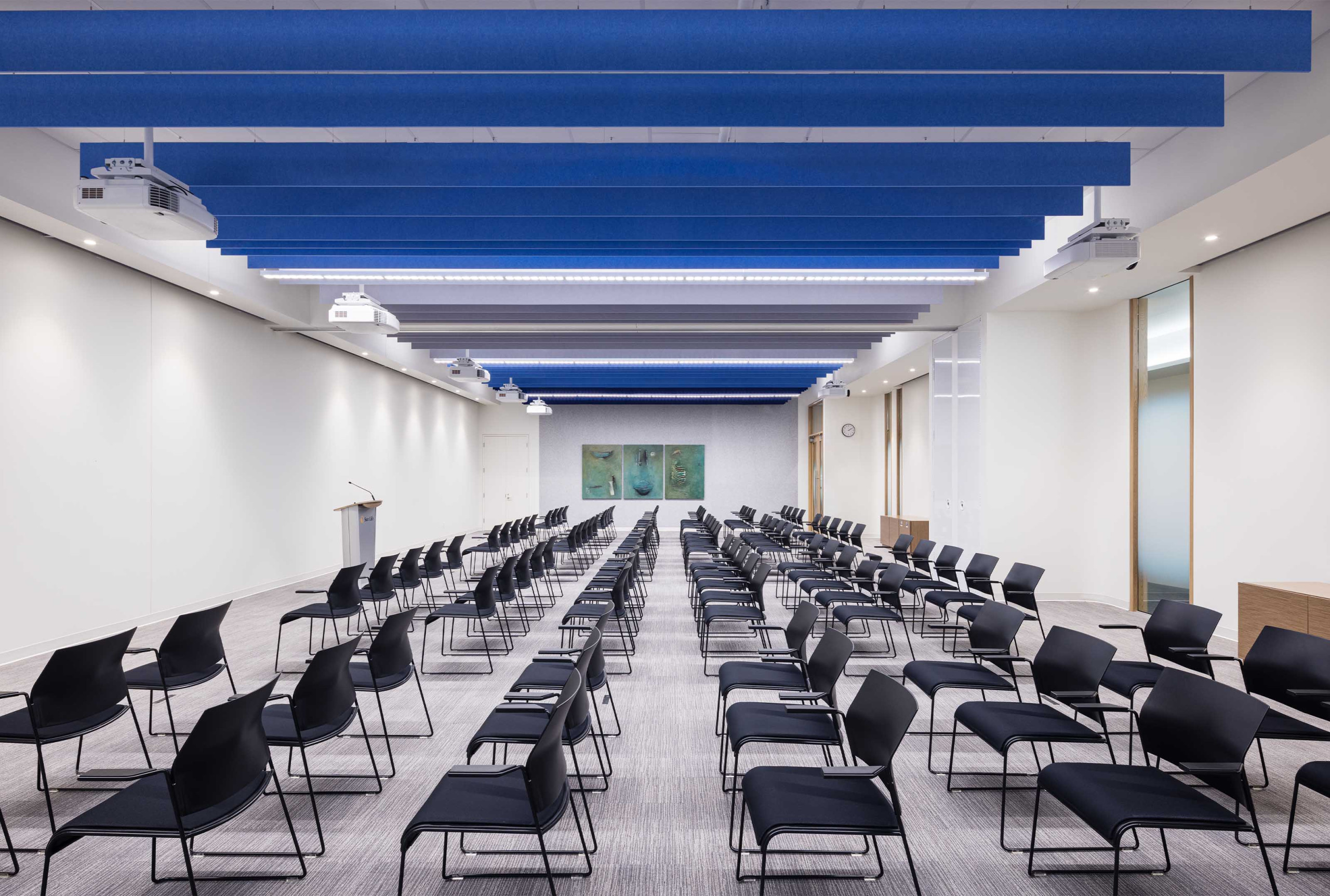 SoundEdge® tavan sistemi, gelişmiş akustik performans ve şık tasarım efektleri sağlamak için esnek yapı blokları sunar. Modüler tek kanat tasarımı, birçok uzunluk ve derinlikte mevcut olup, kolayca kurulabilir ve çeşitli konfigürasyonlarda karıştırılıp eşleştirilebilir. Ses yansımalarını önemli ölçüde azaltmak için tasarlanan SoundEdge®, tamamen geri dönüştürülmüş içeriğe sahip Asoft™ akustik malzeme ile üretilmiştir.