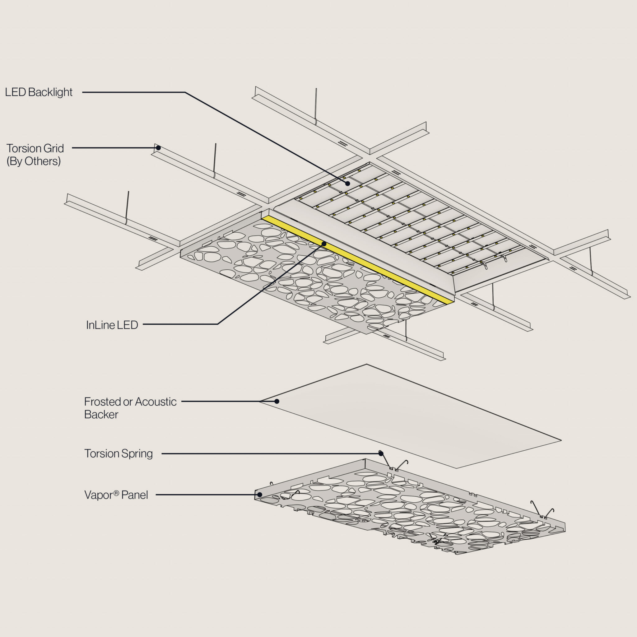 With the option for InLine and Backlighting, you can transform any area into a visually stunning hub that caters to your unique style. Whether you’re designing a modern office, a cozy cafe, or a vibrant home, the Vapor® SHIFT X adds an unforgettable touch of sophistication and warmth. Illuminate your projects with style and make sound management a priority with this top-of-the-line acoustic panel solution.