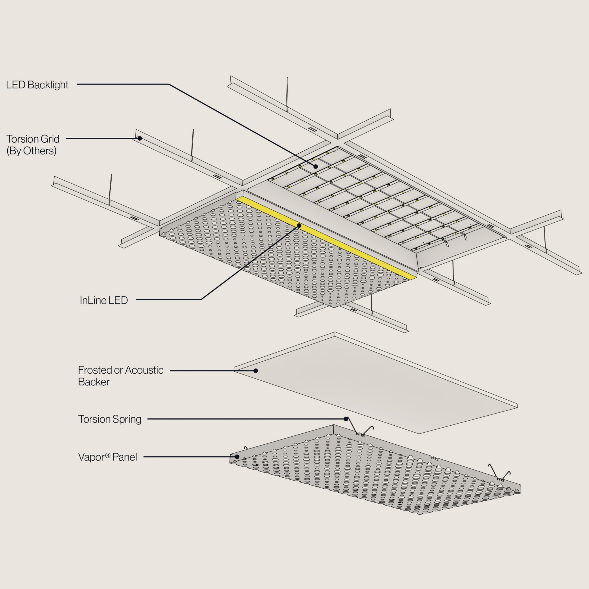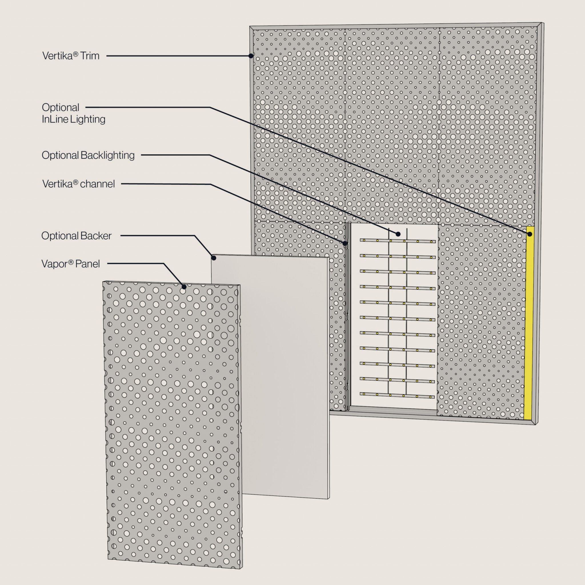Entegre InLine ve arka aydınlatma seçenekleri ile projelerinizde aydınlatmayı zahmetsizce ekler. Modern mimarinin ihtiyaçlarına uygun olan Vapor® SKY, her alanı daha işlevsel hale getirmek için mükemmel bir çözümdür. Işık ve ses uyumu sayesinde, yaşam alanlarınızda eşsiz bir deneyim sunar.