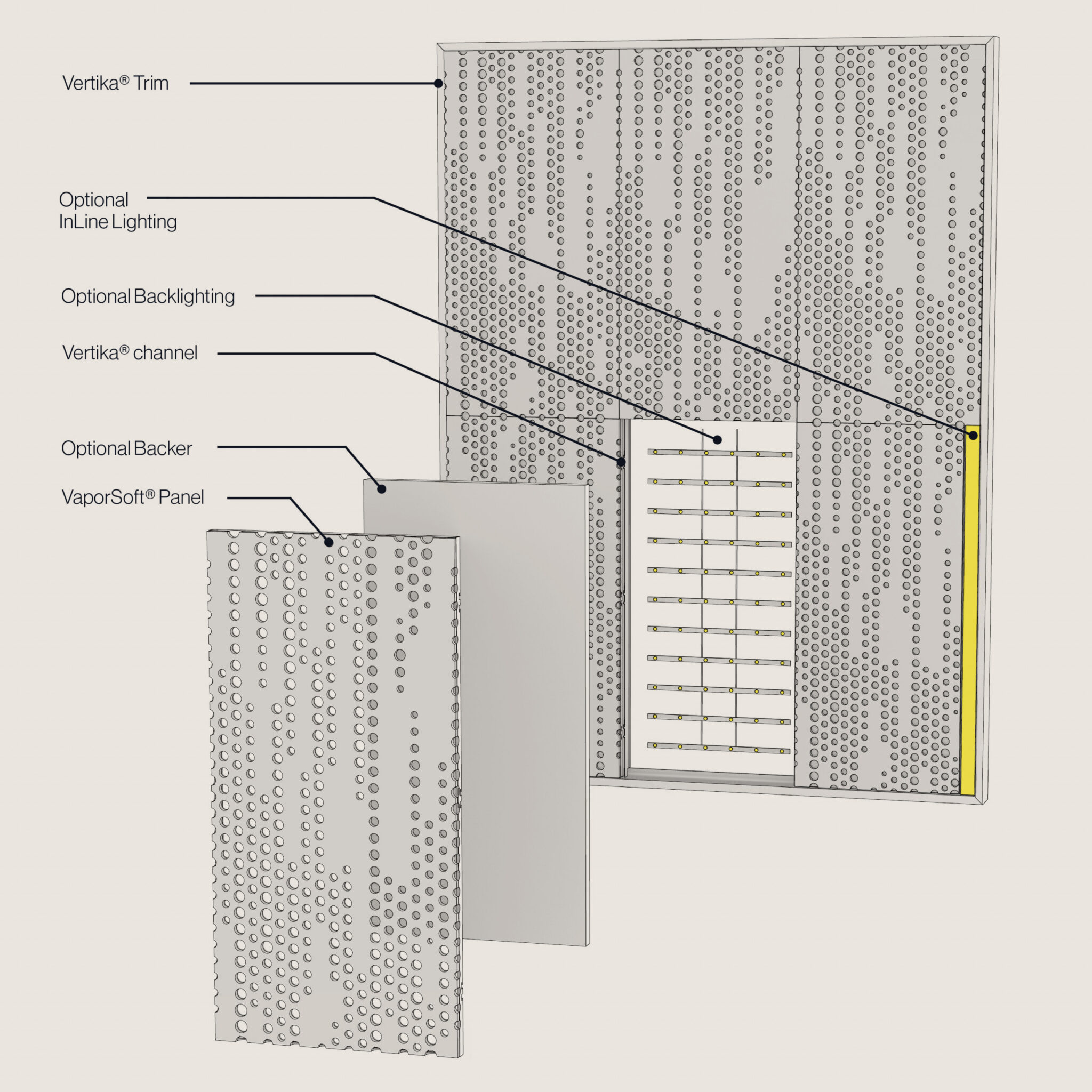 Bu etkileyici tasarımın yanı sıra, Soft Sound malzemesi sayesinde ses emilimi de sağlanıyor; böylece hem estetik hem de akustik konforu bir araya getiriyor. İsterseniz, eklemek istediğiniz opsiyonel arka aydınlatma ile bu trail etkisini daha da vurgulayarak mekanınızı aydınlatabilir ve daha fazla dikkat çekebilirsiniz.