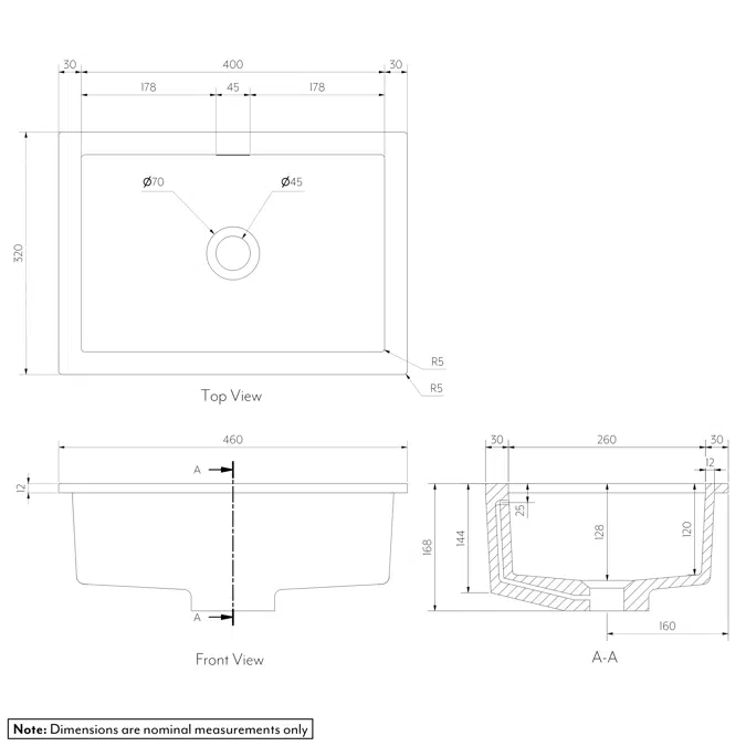 Zuri Standart Dikdörtgen Tezgah Altı Lavabo - ABI Interiors
