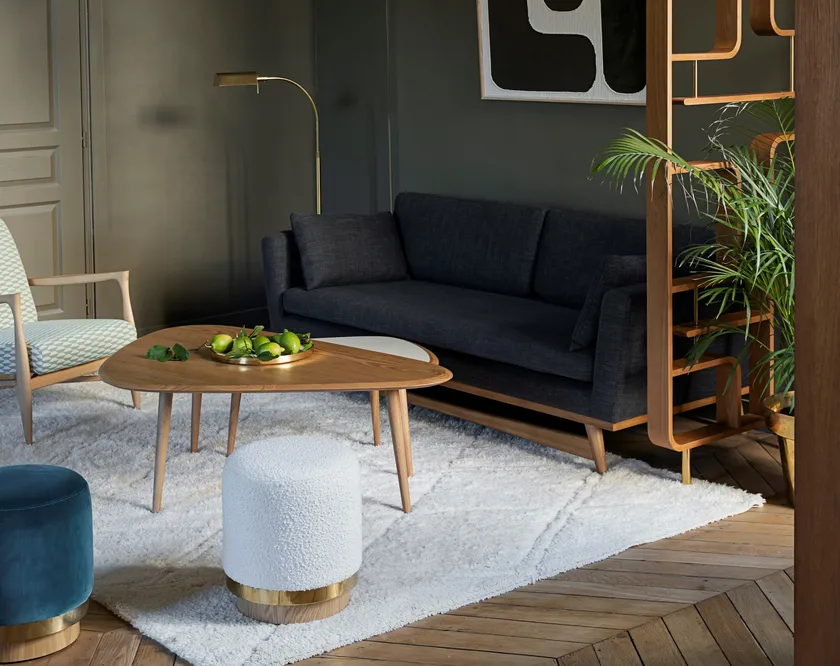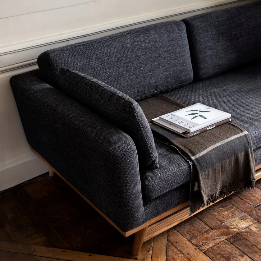 The sofa 210 is made up of a large sitting cushion and can easily accommodate three people.‎ Its clean Scandinavian lines allow it to adapt perfectly to any interior.‎ It is beautiful viewed from both front and back which means it can be positioned wherever you like in the room.‎ The sofa’s compass feet are in solid oak, cut in soft lines to give a contemporary feel.‎ The depth of the seating ensures a very comfortable experience.‎