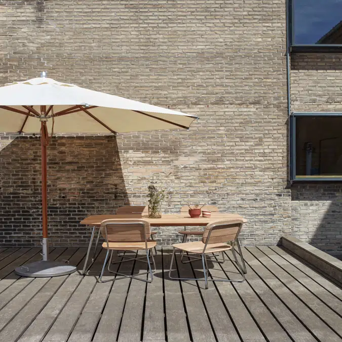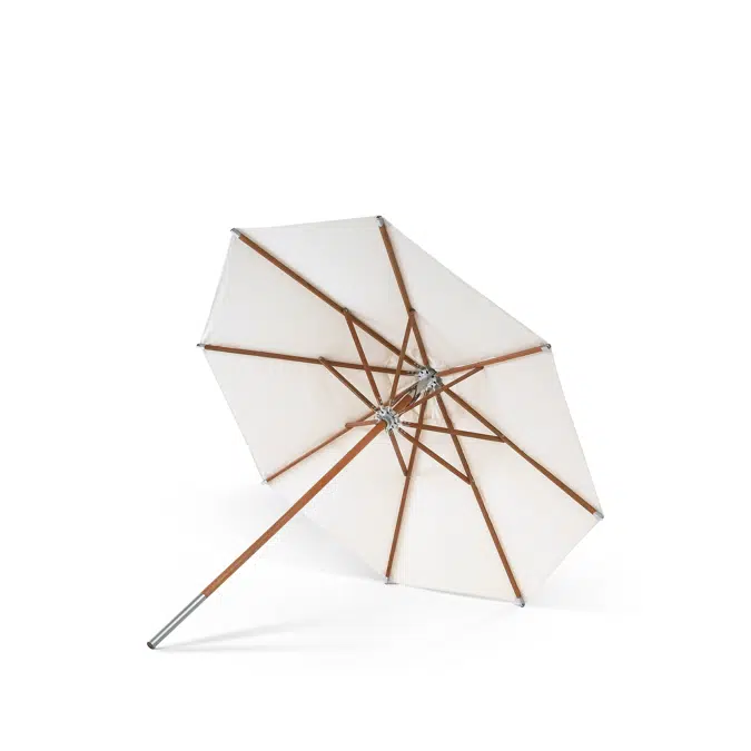 Create cool shade with the Atlantis umbrella and relax with outdoor dining under the summer sun. While the textile has been leather-reinforced to enhance its strength, the foot of the wooden pole is metal-reinforced to protect against wear and scratches when placed in the foot. The top metal fixings and protective parts of the foot are made of aluminium for a more exclusive finish. The wood is lacquered and made of 100% FSC-certified kapur wood from Indonesia. A double-pulley system makes it easy for everyone to fold up the umbrella. UV protection: UPF50+, the maximum sun protective rating achievable for textiles.