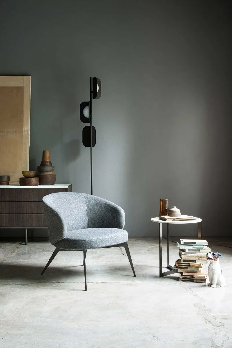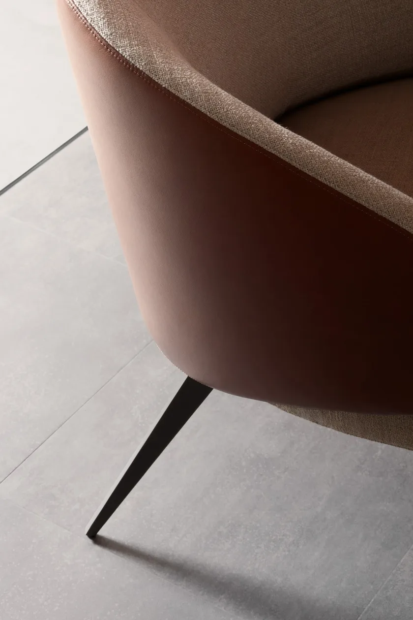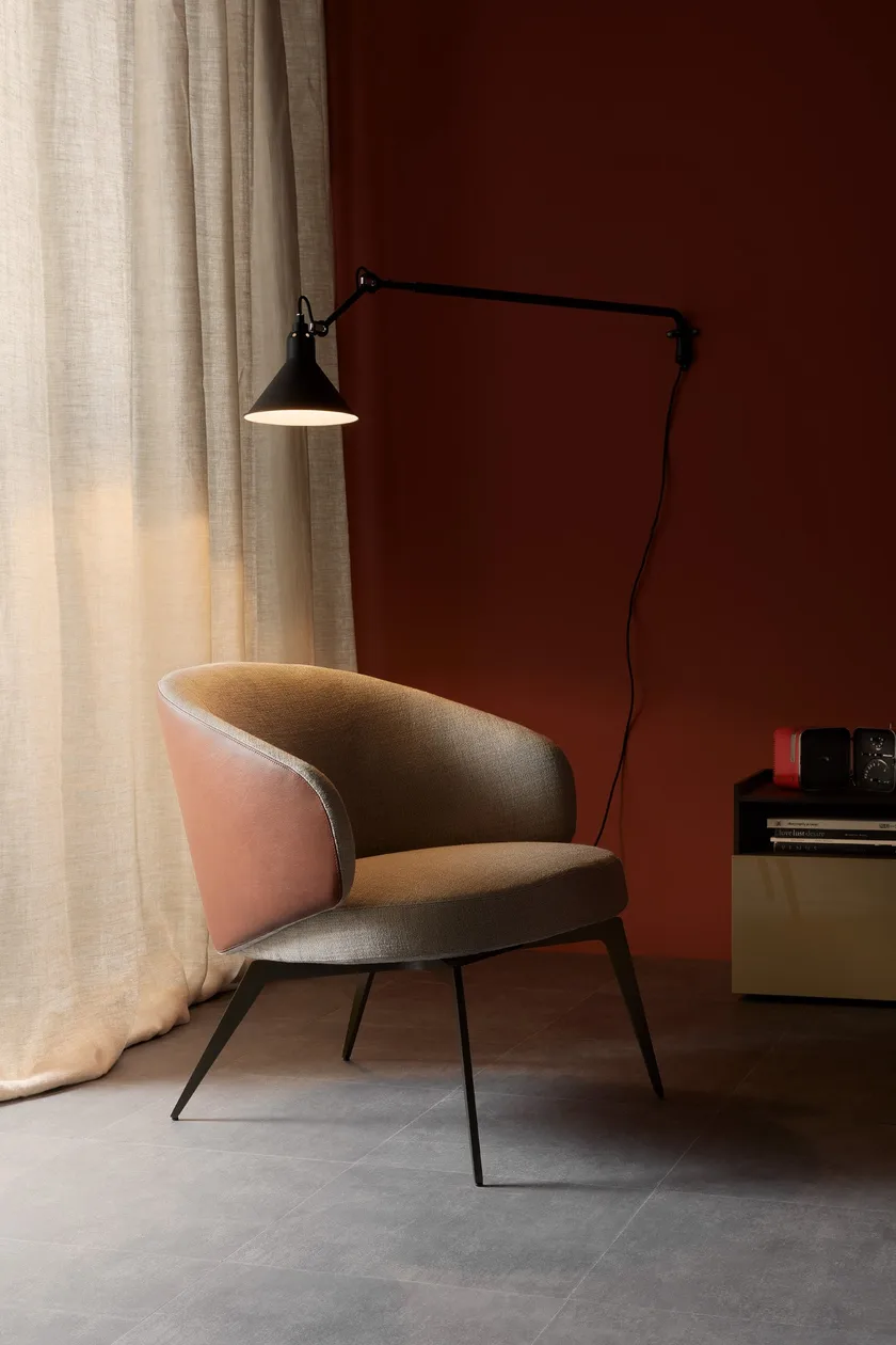 The clean, refined style of Roberto Lazzeroni - who has always incorporated past influences while looking to the future and drawing inspiration from the art world - is clear to see in the Bice lounge chair.‎ This versatile piece feels like a new classic, with its inviting forms and vintage spirit.‎ The perfect solution for any room in the house, be that the living room or bedroom, Bice will also work well in relaxed contract spaces.‎ Its sleek, bronzed metal structure is offset by a covering in either fabric or leather.‎