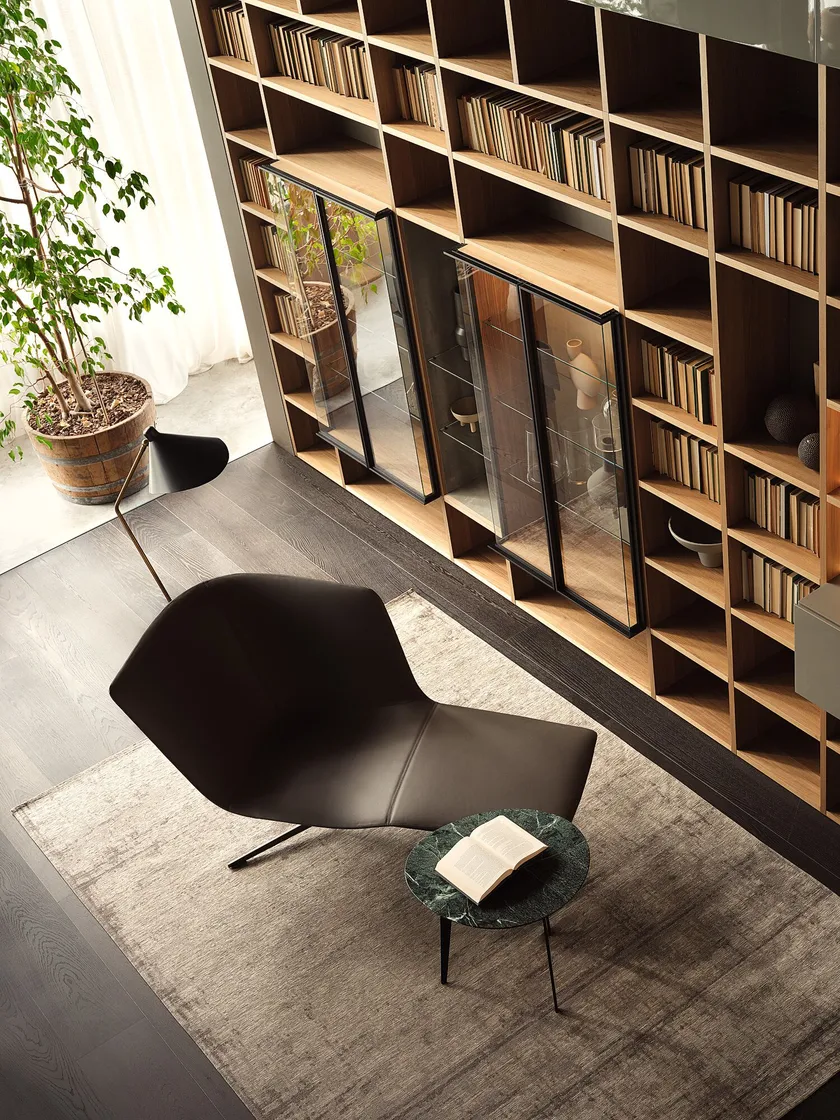 A bold fluidity and an architectural footprint define the asymmetric dormeuse Eydo by Francesco Rota.‎ It is characterized by the aerial structure in bronze painted metal that interacts with the uniquely shaped seat section and backrest, which - though its reduced thickness keeps it as light as a feather - wraps around the body, delivering maximum comfort.‎ The top-stitching detailing and leather covering, meanwhile, take the design to the next level.‎