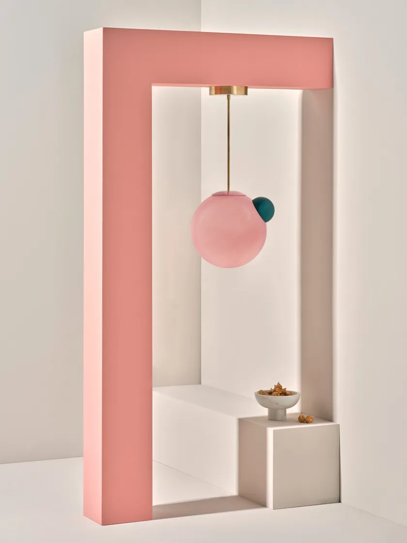Ourania is cradled by the heavens like ceramic by glass, like a child by parents.‎ Ceaselessly, she aspires to the stars — unburdened, unwavering.‎ The light refracts through her rose-hued glass form, bathing her surroundings in comforting serenity.‎ Ourania encompasses both mother and father, light and shadow — intimacy and aloofness.‎ They all are linked by the gaze that ascends to the sky.‎