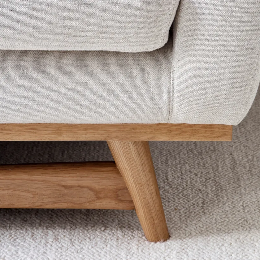 210 numaralı kanepe, geniş bir oturma minderinden oluşur ve üç kişiyi rahatlıkla ağırlayabilir. Temiz İskandinav çizgileri, her türlü iç mekana mükemmel uyum sağlar. Hem önden hem de arkadan güzel bir görünüme sahip olması, odada istediğiniz yere yerleştirilebileceği anlamına gelir. Kanepenin pusula ayakları, çağdaş bir his vermek için yumuşak çizgilerle kesilmiş masif meşe ağacından yapılmıştır. Oturma alanının derinliği, oldukça konforlu bir deneyim sağlar.
