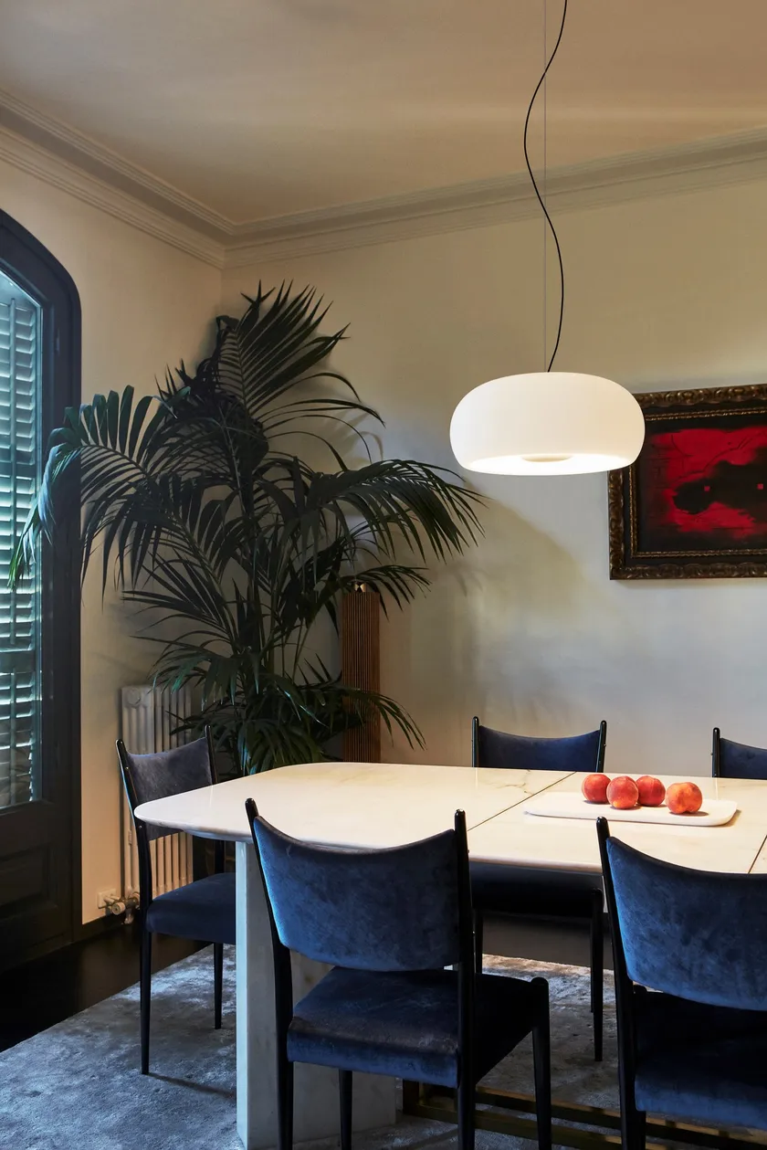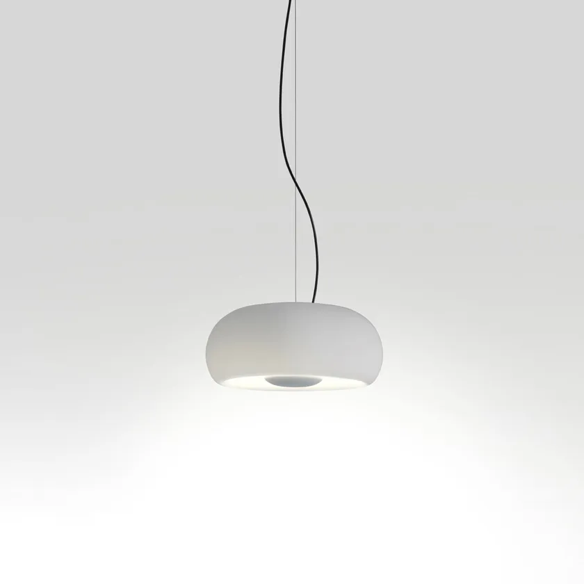 İlk bakışta Vetra, geleneksel, eski moda, üfleme camdan yapılmış bir lambadan başka bir şey değil gibi görünebilir, ancak lambayı açtığınızda bir sürprizle karşılaşıyorsunuz. Joan Gaspar, reflektör olarak tamamen kapalı bir cam difüzör kullanıyor ve ışık kaynağını yaratıcı bir şekilde abajurun içine değil dışına yerleştiriyor. Vetra, parlama yapmadan beklenenden daha fazla ışık veriyor. Işığın çoğu aşağıya yönlendirilirken, geri kalanı abajurun içine doğru filtrelenerek onu ince bir şekilde aydınlatıyor. Işığı çoğaltan bir yankı gibi, açıkken tüm hatları belirginleşiyor ve canlanıyor gibi görünüyor. Bu koleksiyon, ışıkla ilişkisini daha da vurgulayan bir renk olan beyaz ve kehribar renklerinde farklı çaplarda (20, 32 ve 43 cm) sunuluyor. Lambanın asıl kısmının daha görünür hale geldiği ve bu tonlarla korunan ışığının daha sıcak olduğu zıt bir düzen.
