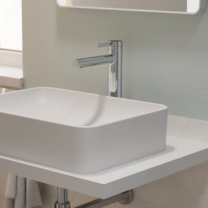 Zesis S Tek kollu lavabo bataryası 230 CoolStart, açılır kapanır gider setine sahip lavabolar için